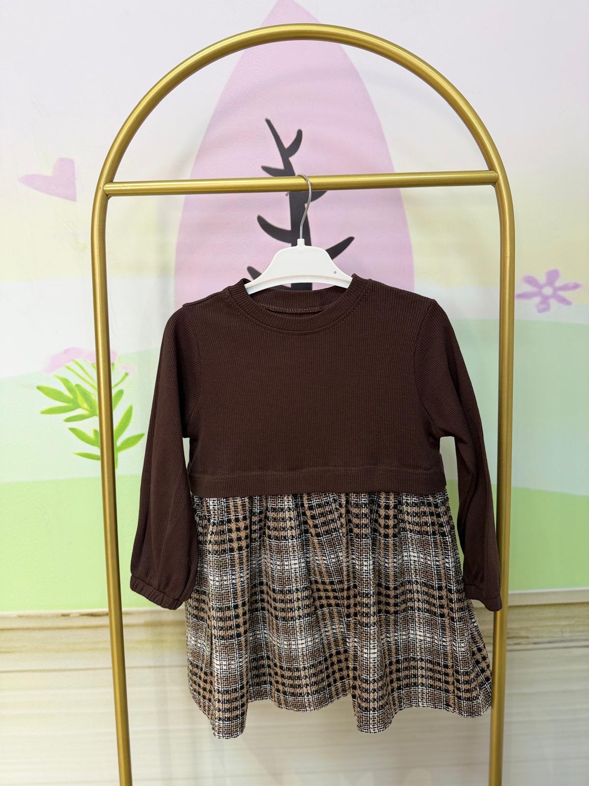 Kahverengi Ekose Elbise
